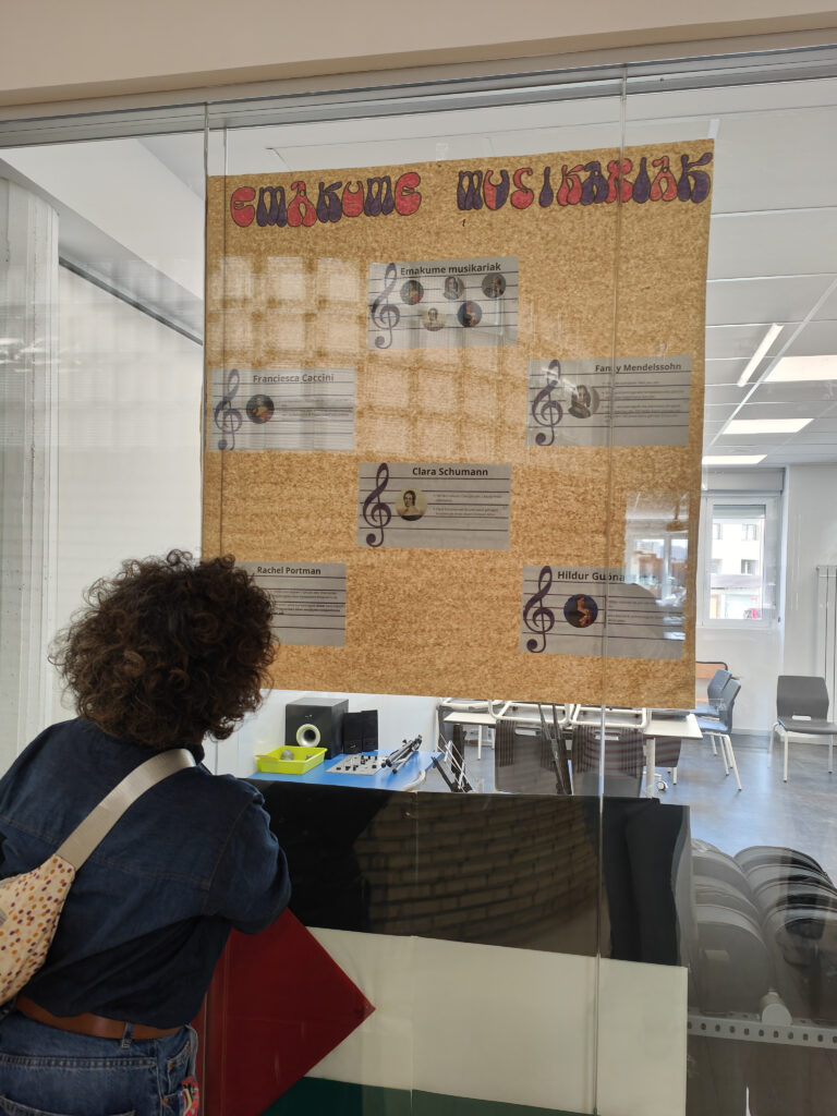 Hona hemen Marrazketa – Musika mintegian landutako martxoak 8-ren inguruko lanak, Emakumeen Nazioarteko Egunari garrantzia emateko. Sarrera, pintzelkada morez jantzi da, zintzilikatutako paperezko esfera batzuk eskegiz. Musika gelan, emakume musikarien kartel didaktiko bat jarri da,